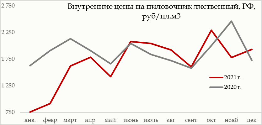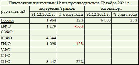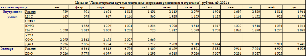 Таблица. Цены на листв. пиловочник - 2021 г.