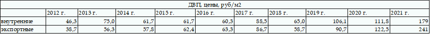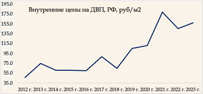 спад 27%. Экспортные цены на ДВП в среднем по России на конец