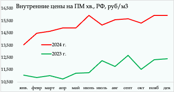 Диаграмма. Цены российских предприятий на ПМ хвойные за