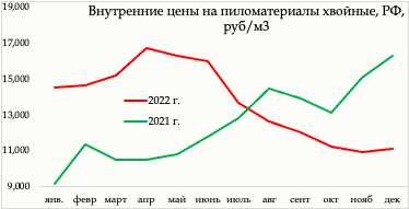 Диаграмма. Цены российских предприятий на ПМ хвойные в