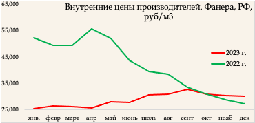 Диаграмма. Цены фанерных предприятий России на фанеру,
