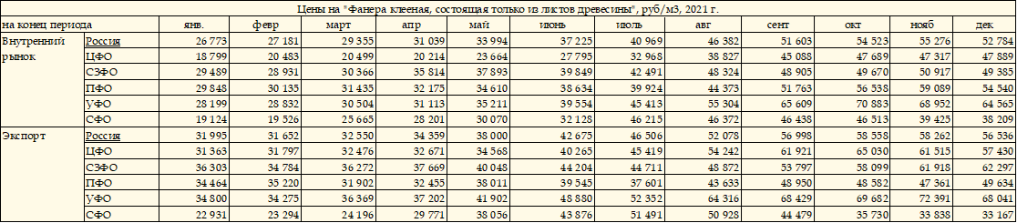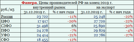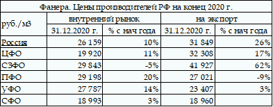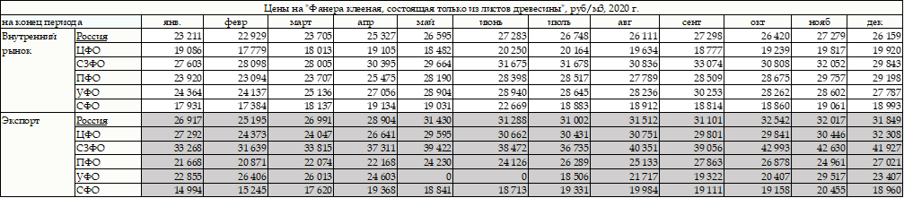 Цены производителей РФ на фанеру клееную, в течение 2020