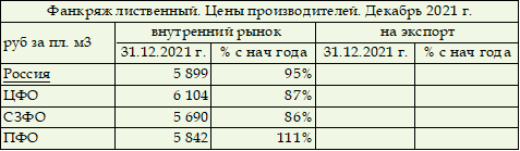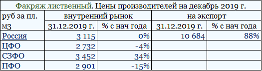 Итоги 2019 г. Цены производителей РФ на фанкряж