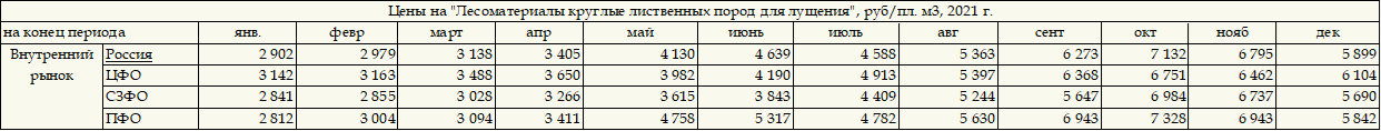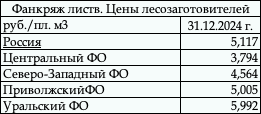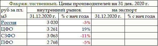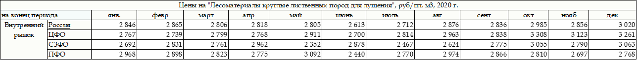 Таблица. Цены на лиственный фвнкряж в 2020 г.