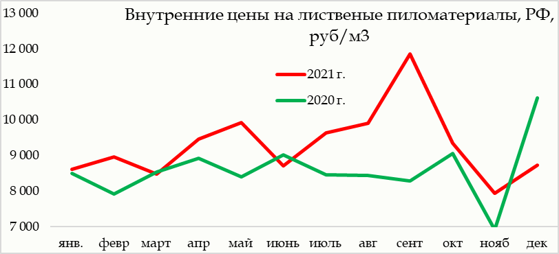 Диаграмма. Динамика внутренних цен на фанкряж за последние