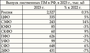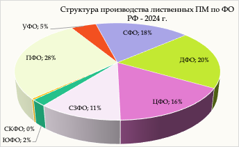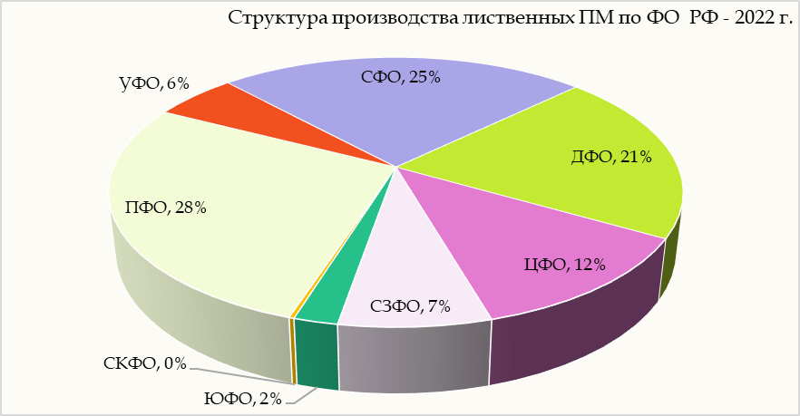 Максимально высокие объемы выпуска лиственных пиломатериалов зафиксированы в Приволжском ФО, Сибирском ФО и в Дальневосточном ФО.