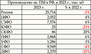хвойных ПМ в России в 2024 г.