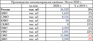 Таблица. Производство хвойных пиломатериалов по итогам
