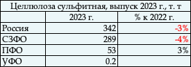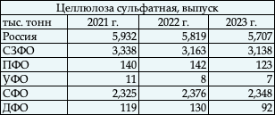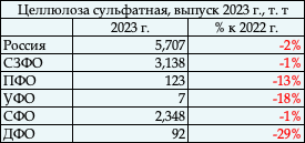 Таблица. Итоги выпуска сульфитной целлюлозы в 2023 г.