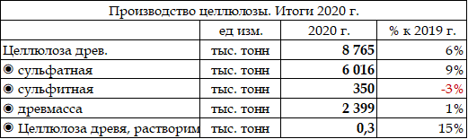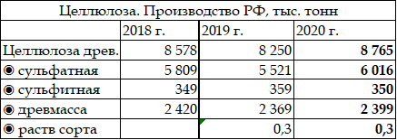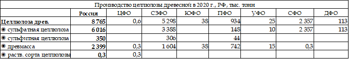 Таблица. Итоги выпуска целлюлозы растворимых сортов в 2021 г.