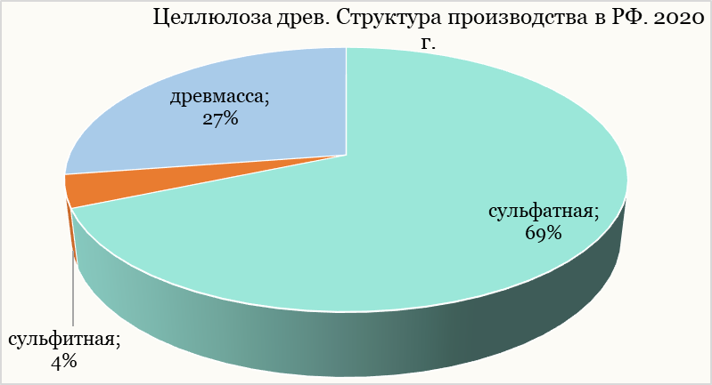 Диаграмма. Долевое распределение производства древесной целлюлозы в России по видам целлюлозы