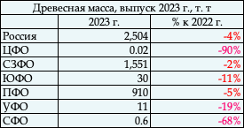 Таблица. Итоги выпуска древесной массы в 2021 г. - 2023