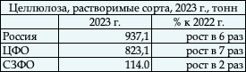 Таблица. Объёмы варки целлюлозы растворимых сортов в 2023