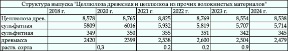 Таблица. Структура выпуска древесной целлюлозы в 2024