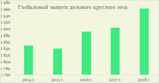 Диаграмма. Динамика глобального выпуска делового круглого леса за последние пять лет