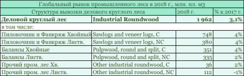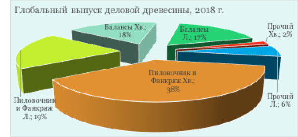 Глобальный выпуск необработанной древесины промышленного назначения, итоги 2018 г.