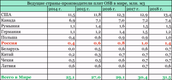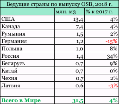 Динамика выпуска плит OSB странами-мировыми лидерами
