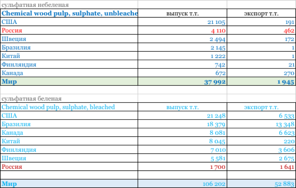 Мировые лидиры по производству древесной целлюлозы (Wood pulp)