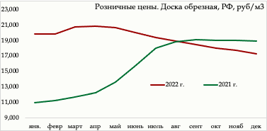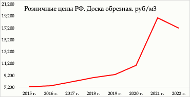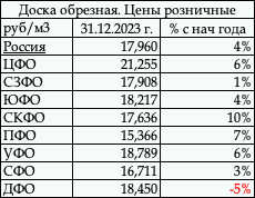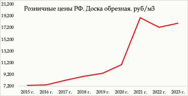 Итоги 2024 г. Средние цены по России: розничные цены на Доску за период с начала года выросли на 20%, составив на конец года 21549 рублей за кубометр.