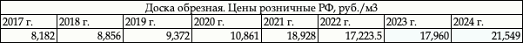 Таблица. Розничные цены на доску обрезную в 2024 г.