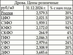 Таблица. Розничные цены по ФО по состоянию на конец декабря
