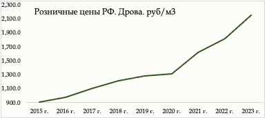 Диаграмма. Динамика розничных цен на дрова, РФ