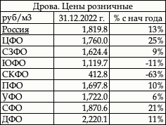 Таблица. Розничные цены по состоянию на конец декабря 2022 г.