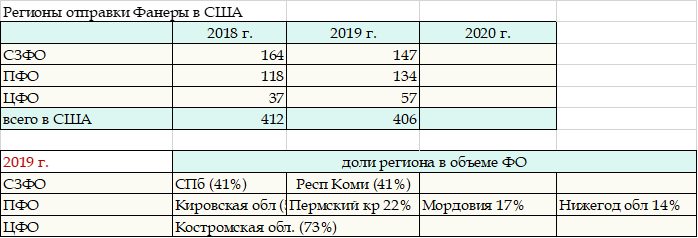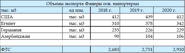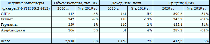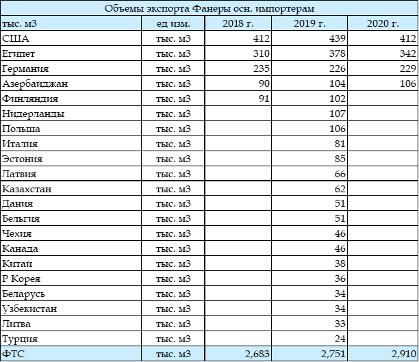 Таблица. Экспорт фанеры в 2020 г. Ведущие