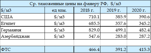 Таблица. Динамика средневзвешенных цен на поставки фанеры из РФ ведущим импортерам