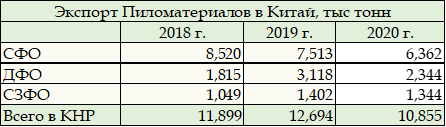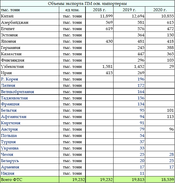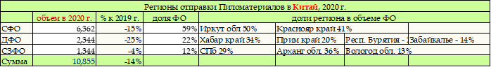 Таблица. Экспорт ПМ из РФ в Китай - регионы отправки