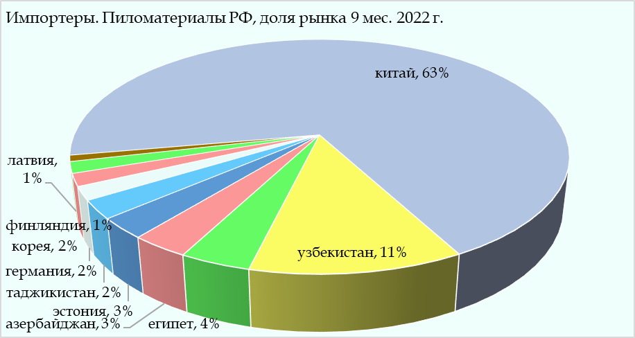 Диаграмма. Ведущие импортеры российских пиломатериалов в 9 мес. 2022 г.