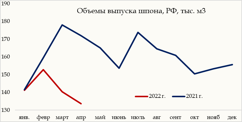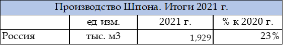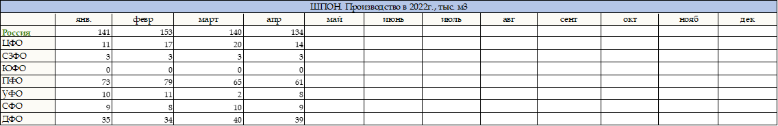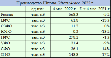 Производство шпона для выпуска фанеры Таблица. Производство шпона по ФО. 4 мес. 2022 г.