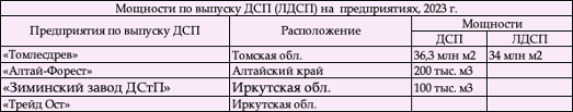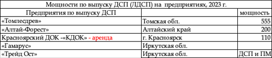 ИНФО: ТАБЛИЦЫ СФО/ЮФО - рынок ДСтП