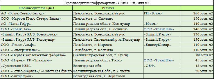 ИНФО: ТАБЛИЦЫ ГОФРО - СЗФО