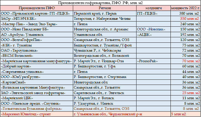 ИНФО: ТАБЛИЦЫ ГОФРО - ПФО