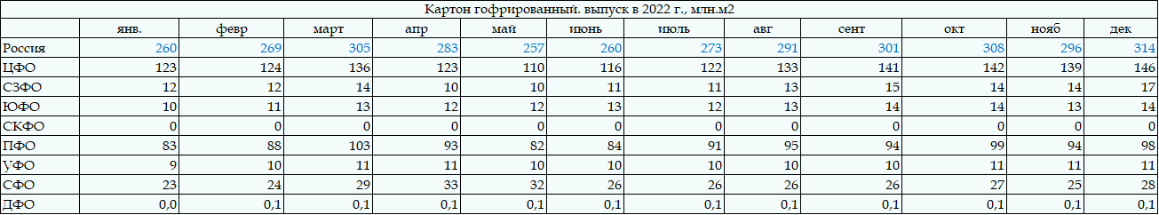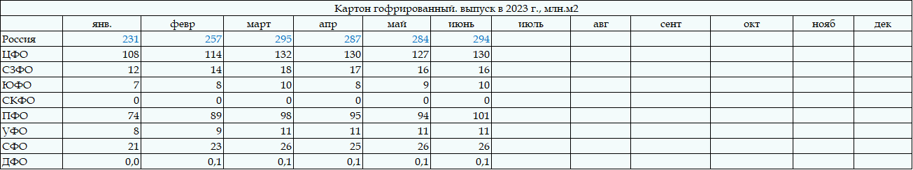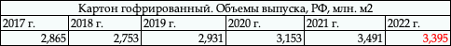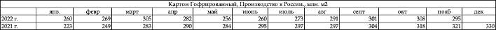 Таблица 2. Итоги п/г 2023 г. по выпуску гофрокартона по ФО