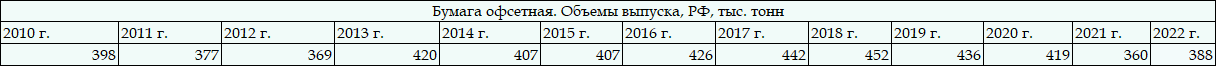 выпуска «Офсетной бумаги для печати» в России
