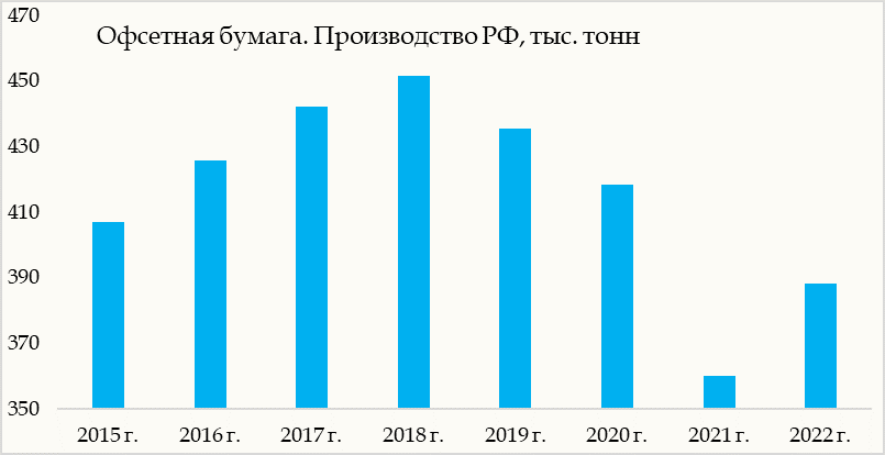 Динамика выпуска офсетной бумаги, РФ. с 2015 г. по 2022