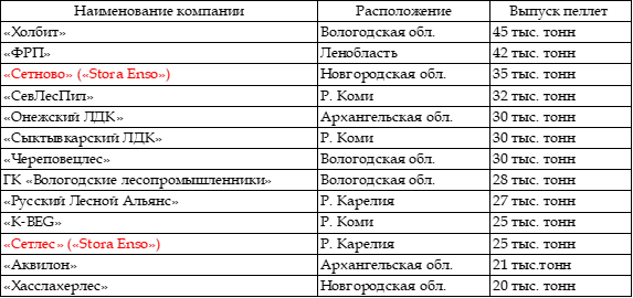 Производители Пеллет/Топливных брикетов в СЗФО. По