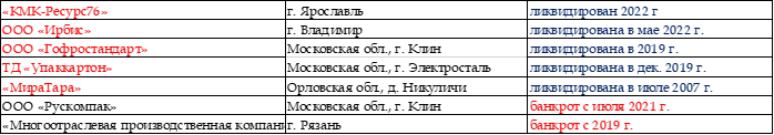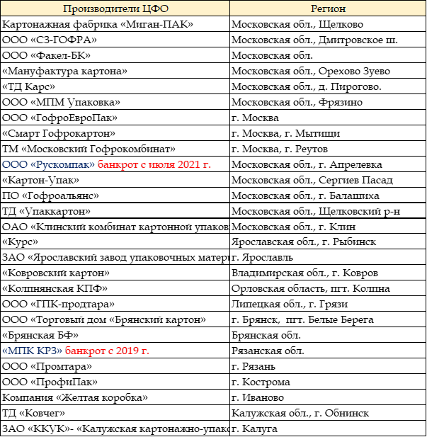 Таблица 2.Предприятия по выпуску гофрокартона в ЦФО
