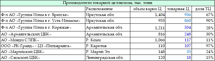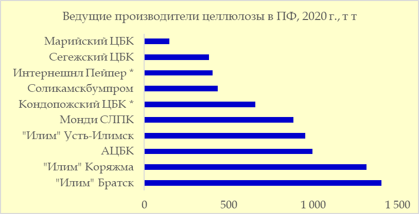 На российском рынке целлюлозы в настоящее время работает 23 предприятия, однако почти 85% от объема варки целлюлозы приходится на десять ЦБК. Ведущими игроками на рынке целлюлозы в России выступают пять крупных целлюлозно-бумажных предприятия.