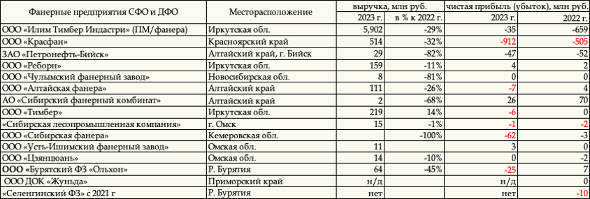 ИНФО: Финансовые итоги фанерных предприятий в СФО/ДФО 2023 г.