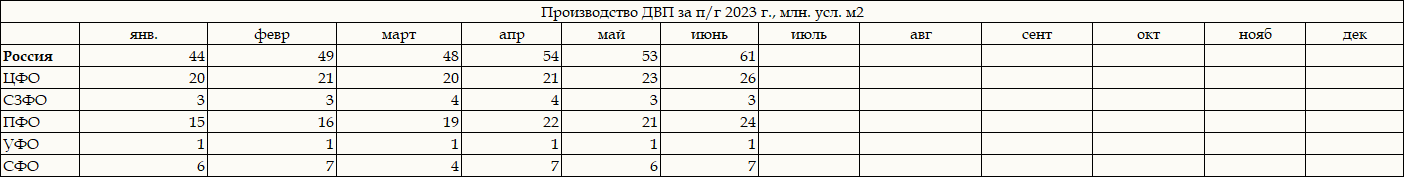 Таблица. Итоги п/г 2023 г. по выпуску ДВП по ФО