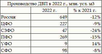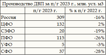 Таблица. Итоги 2023 г. по выпуску ДВП по ФО РФ