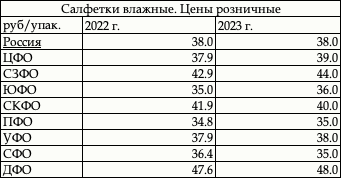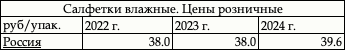 В 2023 г. розничные цены на «Салфетки