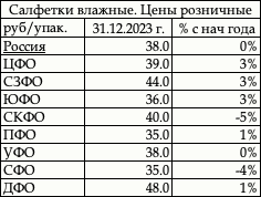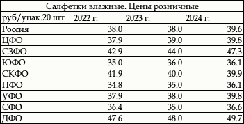 Таблица. Розничные цены на влажные салфетки в 2024 г.