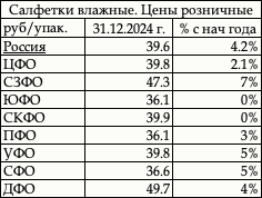 «Салфетки влажные» в 2024 г. подорожали на 4%