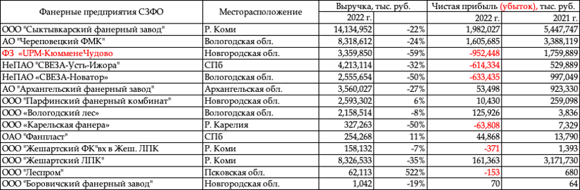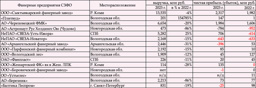 ИНФО: Финансовые итоги фанерных предприятий в СЗФО - 2023 г.