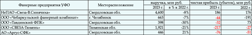 ИНФО: Финансовые итоги фанерных предприятий в УФО - 2023 г.