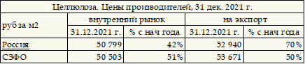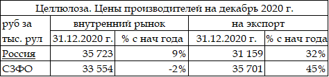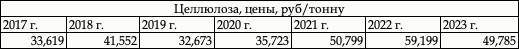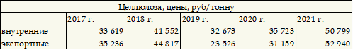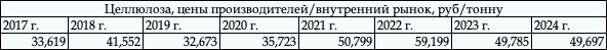 Таблица. Внутренние и экспортные цены на целлюлозу